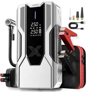Emergency Portable Jump Starter with Air Compressor - 3000A 150PSI for Cars, Trucks & SUVs up to 9L Gas/7L Diesel, 12000mAh Portable Power Bank, -20°F Cold Start (Silver)