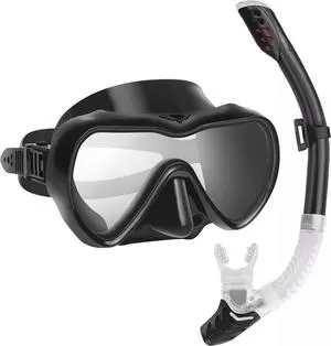 Idealforce Premium Tempered Glass Anti-Fog Diving Mask & Snorkel Set | Professional Scuba Snorkeling Mask for Adults with Dry Top Snorkel Tube | Panoramic View Swim Goggles with Adjustable Silicone