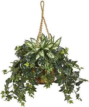 31 Bromeliad & Pothos Artificial Plant in Hanging Basket