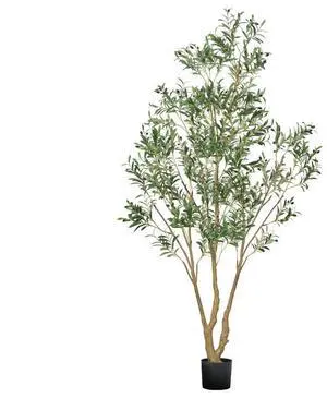 VEVOR 8FT Artificial Olive Tree Tall Fake Plant with Black Pot for Home Office Use