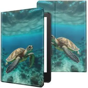 Case for All-New Kindle Paperwhite 12th Generation 7 inch 2024 & Kindle Colorsoft Signature Edition 2024 Lightweight Protective PU Leather Smart Stand Cover with Auto Wake Sleep - Green Turtle