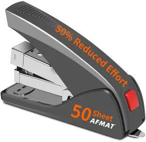 Effortless Stapler for Desk, 50 Sheet Desktop Stapler, Ergonomic Office Staplers, One Finger Touch Stapling, Built-in Remover, Portable & Space Save Size, Good for Home & Office ES10(Gray)- Type: Heavy Duty Hole Punchers