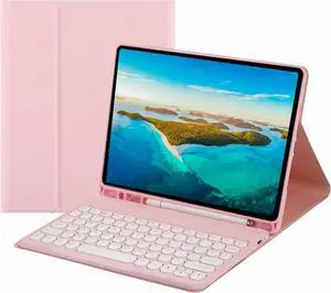 AnMengXinLing Case with Keyboard for Galaxy Tab S10 Lite/S10 FE/S9FE/S9/S8/S7, Candy Colors Slim Protective Cover with Magnetic Detachable Keyboard with S Pen Holder, Pink