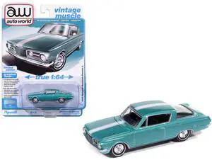 1965 Plymouth Barracuda Formula S Turquoise Metallic with White Stripe "Vintage Muscle" 1/64 Diecast Model Car by Auto World