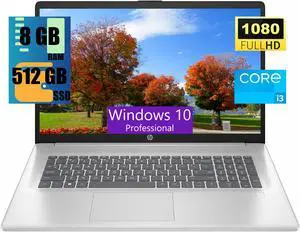 HP 17 Laptop, 17.3" FHD (1920 x 1080) Display, Intel Core i3-N305 8 Cores Processor, Intel UHD Graphics, 8GB DDR4 512GB PCIe SSD, Webcam, HDMI, Fingerprint Reader, Wi-Fi 6, Windows 10 Pro
