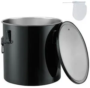 VEVOR Fryer Grease Bucket, 10 Gal Oil Disposal Caddy Stainless Steel Fryer Oil Bucket Rust-Proof Coating, Oil Transport Container with Lid, Lock Clips, Filter Bag for Hot Cooking Oil Filtering, Black