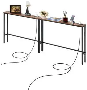 VEVOR Narrow Console Table, 2 Pack Behind Couch Shelf with Power Outlets, 1-Tier Long Entryway Shelf, Narrow Sofa Table with Metal Frame and Charge Station, for Entryway, Hallway, Living Room