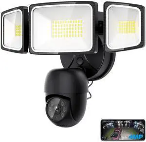 PTZ Security Camera with Floodlight, 360° Auto Tracking 1080P, 2500 Lumens, Color Night Vision, Weatherproof, 90dB Siren, Includes 64GB TF Card & Plug-in Adapter