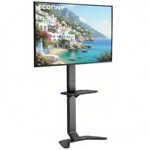 Mobile Rolling Floor TV Stand with Wheels, Height Adjustable & Swivel, for 27-65 Inch Screens, Black