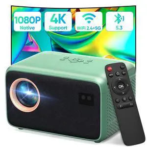 Projector with Wifi and Bluetooth, Native 1080P Portable Mini Projector 4K Support, Auto Focus & Auto Keystone Projector for Bedroom/Home/Outdoor, Compatible with Smartphone/HDMI/USB/TV Stick