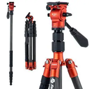 Fotopro 59" Carbon Fiber Travel Tripod, Compact Video Tripods with Fluid Head, Detachable Monopod with Arca-Swiss Quick Release Plate and Bag, Camera Tripod Load up to 8KG/17.63lbs, Orange