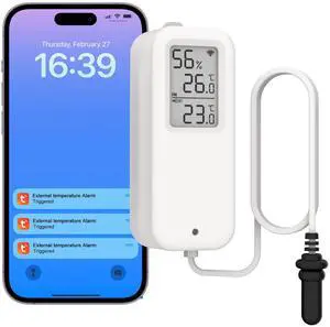 WiFi Freezer Thermometer with Alarm, Wireless Refrigerator Temperature Sensor with Remote App Notification, Email Alert, 2 Years Free Data Export, for Home Kitchen Fridge Hot Tub