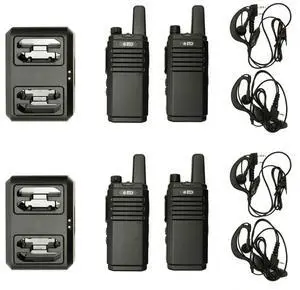 BTECH FRS-B1 4 Pack FRS Business, Adult Walkie Talkies, NOAA, High Output Two-Way Radio. Full Kit with Earpiece Kit, Holsters, Desktop Charger, Built in Flashlight, NOAA, and More