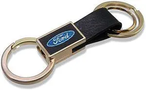 Ford Round Hook Leather Strip Double Ring Golden Metal Key Chain