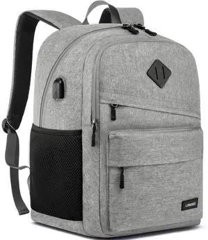 LIBENED School Backpack for Teen Boys and Girls, with 17.3 inch Laptop Sleeve, Large Computer Bag Mochila with 2 Compartments, Ergonomic Straps, Grey