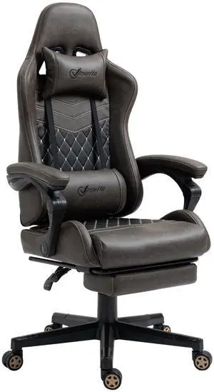 Racing Gaming Chair Diamond PU Leather Office Gamer Chair High Back Swivel Recliner with Footrest, Lumbar Support, Adjustable Height, Brown