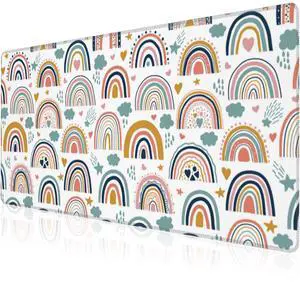 KEHIPI Colorful Skulls Desk Mat Large Gaming Mouse Pad XL Extended Mousepad Desk Pad Big Keyboard Pad Desktop Mouse Mat 31.5''x11.8'' Deskmat for Gamers with Stitched Edges Non-Slip Rubber Base