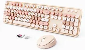 MOFII Wireless Keyboard and Mouse Combo, Retro Typewriter Keyboard with Multi-Media Function Keys and Number Pad Compared for PC Computer Windows 7 8 10 (Milk-Tea Colorful)