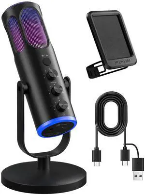 Gaming USB Microphone, Noise Cancellation Condenser Mic with Mute, Gain, RGB Indicator, Boom Arm Stand for Streaming, Podcast, Twitch, YouTube, Discord, PC, Computer, PS4, PS5, Mac, BlackBrand: InnoGearColor: BlackConnector: USB Type-C, USBMicrophone Sensitivity: -45 decibelsModel #: 750625991766