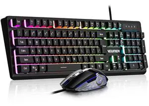 Newmen GM104 Wired Gaming Keyboard and Mouse Combo,USB RGB Backlit Mechanical Feel 26-Key Anti-Ghosting Computer Gaming Keyboards,Colorful Breathing Backlit Gaming Mouse,for PC Gamer Office,Black