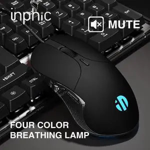 INPHIC PB1 USB Wired Gaming Mouse 6 Keys Luminous Mute Mouse 4800 DPI adjustment Macro definition Programming Gaming Mice for PC