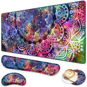Mouse Pad with Wrist Rest, Large Mouse Pad, Ergonomic Gaming Desk Pad Keyboard Wrist Rest Set, 4-in-1 Desk Mat Keyboard Mat for Home, Office