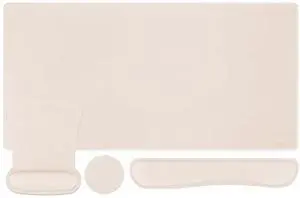 Keyboard Mouse Pad Set, Large Gaming Mousepad&Keyboard Wrist Rest&Mouse Wrist Rest&Coaster, Ergonomic Non-Slip Mousepad&Easy Typing Cushion with Memory Foam for Home Office, Apricot