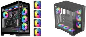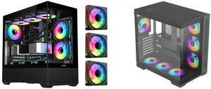 SAMA SV02 ATX Computer Gaming PC Case Mid Tower Black with 3 ARGB Fans Pre-Installed, Tempered Glass Transparent Side Panel,BTF Back Plug Motherboard Design and SAMA V52 ATX Mid Tower PC Case, Dual-Chamber Panoramic Tempered Glass Gaming Case, Back-Connect ATX Support, Type-C USB 3.2, Supports 420mm GPU & 360mm Radiator, 7 ARGB PWM Fans Included, Black