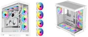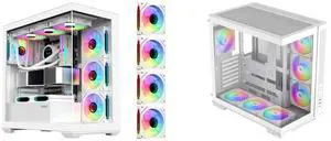 SAMA 2851 ATX Mid-Tower PC Gaming Case, High-Airflow, Sturdy Curved Tempered Glass Front, 4 ARGB PWM Fan Pre-installed with Fan Hub, White and SAMA V52 ATX Mid Tower PC Case, Dual-Chamber Panoramic Tempered Glass Gaming Case, Back-Connect ATX Support, Type-C USB 3.2, Supports 420mm GPU & 360mm Radiator, 7 ARGB PWM Fans Included, White