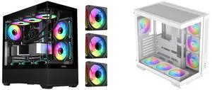SAMA 2851 ATX Mid-Tower PC Gaming Case, High-Airflow, Sturdy Curved Tempered Glass Front, 4 ARGB PWM Fan Pre-installed with Fan Hub, Black and SAMA V52 ATX Mid Tower PC Case, Dual-Chamber Panoramic Tempered Glass Gaming Case, Back-Connect ATX Support, Type-C USB 3.2, Supports 420mm GPU & 360mm Radiator, 7 ARGB PWM Fans Included, White