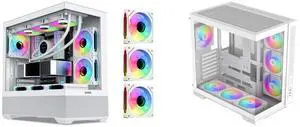SAMA SV01 Gaming PC Case Computer Mid Tower ATX Case White with 4 Addressable RGB Fans Pre-Installed, Back Plug Motherboard Design, Tempered Glass Transparent Side Panel and SAMA V52 ATX Mid Tower PC Case, Dual-Chamber Panoramic Tempered Glass Gaming Case, Back-Connect ATX Support, Type-C USB 3.2, Supports 420mm GPU & 360mm Radiator, 7 ARGB PWM Fans Included, White