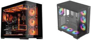 SAMA SV01 Mid Tower ATX Gaming PC Computer Case Black, 4 Addressable RGB Fans Pre-Installed, Tempered Glass Side Panel, Back Plug Motherboard Design and SAMA V52 ATX Mid Tower PC Case, Dual-Chamber Panoramic Tempered Glass Gaming Case, Back-Connect ATX Support, Type-C USB 3.2, Supports 420mm GPU & 360mm Radiator, 7 ARGB PWM Fans Included, Black