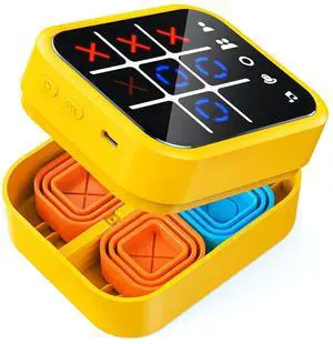 Rechargeable Tic Tac Toe Game Box, Upgraded 5 Fun Brain and Memory Games, Compact Handheld Game Console, Portable Puzzle Travel Game Ideal Gifts for All Ages 3+ (Yellow)