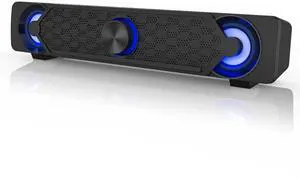 3.Colorful RGB lighting: Not only the sound quality is solid, but also the lighting bar is attractive,are designed into the speakers for pc to personalize your desktop, heightening your gaming and listening enjoyment.