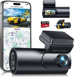 GKU Dash Cam Front and Rear Camera,4K+1080P, 5.8GHz WiFi & GPS Dash Camera for Cars,with 64G SD Card,1.47" Display Dashcam, 24HParking Mode,App,Super Night Vision,Support Max 256GB (D600Pro)