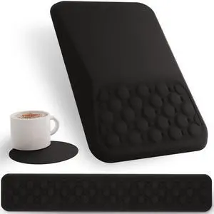 Ergonomic Memory Foam Mouse Wrist Rest Support Pad Cushion for Computer, Laptop, Office Work, PC Gaming - Massage Holes Design - Wrist Pain Relief (Black Mouse Wrist Rest)