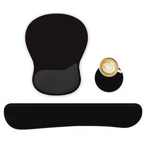Wrist Rest Support for Mouse Pad Keyboard Set Circle Coaster Gaming Mouse Pad Ergonomic Gel Memory Foam Set for Computer, Laptop, Office, Pain Relief, Comfortably Typing Black KM-33