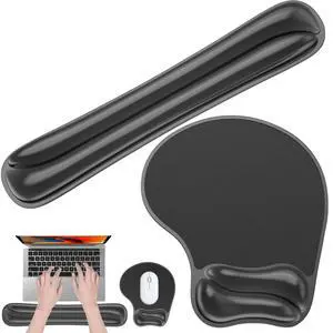 Keyboard Wrist Rest and Mouse Pad with Wrist Support, Memory Foam Set for Computer/Laptop/Mac, Lightweight for Easy Typing & Pain Relief Ergonomic Mousepad (Black)