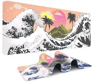 Alpha Fit Orange Sunset Great Wave Gaming Mouse Pad XXL (35.4" x 15.7") - Warm Golden Hour Japanese Art Desk Mat - Lofi Aesthetic Extended Pad