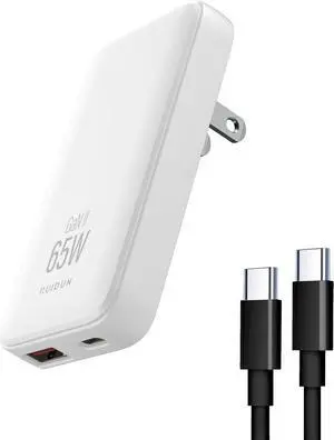 65W GaN USB C Charger,2 Port Flat USB Wall Charger,flodable Plug for Travel, with PD3.0&PPS for MacBook,Laptops,Tablets,for iPhone,iPad Pro,S22,XPS,with 3.28ft 100W Charging Cable, White- Model #: STARWELL284555011296Lan