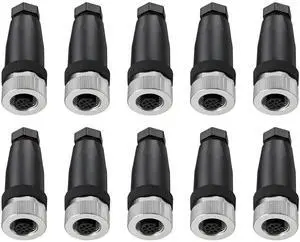 ZBLZGP M12 Sensor Connector Unshield 4 Pin A-Code Straight Female Industrial Waterproof Electrical Field Wireable 12mm Thread Joint Circular Electronic Connector 10Pack