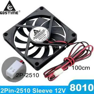 Aomoproing 5Pcs Gdstime 80x80x10mm DC 12V 8cm 80mm Brushless Computer Cooling Case Fan 2Pin 2510 Connector 100cm Cable Length