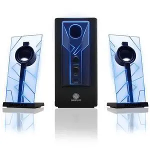 BassPULSE 2.1 Computer Speakers with Blue LED Glow Lights and Powered Subwoofer - Gaming Speaker System for Music on Desktop, Laptop, PC with 40 Watts, Heavy Bass