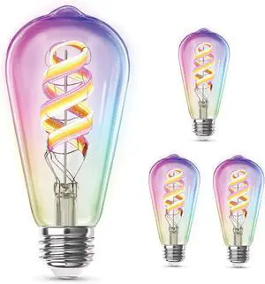 Electric ST21 Smart Spiral LED Filament Edison Bulb, 60W Equiv, RGBW Color Changing, Dimmable, 2.4GHz Wi-Fi Enabled, Works with Alexa & Google Home, App Control, ST2160/RGBW/FIL/AG/4, 4 Pack