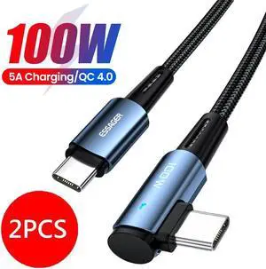 PD 100W USB C to USB C Cable,Jansicotek 5A 20V Fast Charging USB C Cable Right Angle Nylon Braided Charger Cord Type C Cable for Samsung S21 S20 iPad Pro Google Pixel LG (6.6FT, 2-PACK)