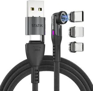 360 Pro Magnetic Charging Cable - Type C Charger Fast Charging 3 in 1 USB C to USB C Cable, Micro USB & iProduct Tips, USB A Adapter, Fits All Devices - 100W Fast Charger, Black 3FT/1M