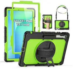 SEYMAC Case for Samsung Galaxy Tab S10 FE+/ S10 FE Plus 5G 13.1 2025, Heavy Duty Full-Body Shockproof Protective Case with Screen Protector, Stand, Hand/Shoulder Strap and Pen Holder, Green