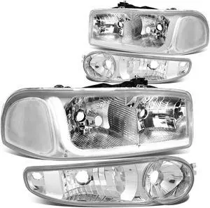 DNA Motoring HL-LB-DAN99-CH-CL1 For 2001 to 2007 GMC Sierra 1500 Classic Yukon Denali LED DRL Light Bar Headlight+Bumper Lamp Chrome Housing Clear Corner 02 03 04 05 06