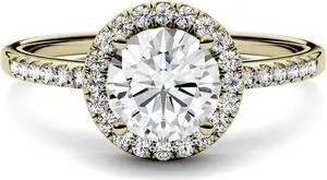 14K Yellow Gold Moissanite by Charles & Colvard 6.5mm Round Halo Engagement Ring-size 5 1.30cttw DEW