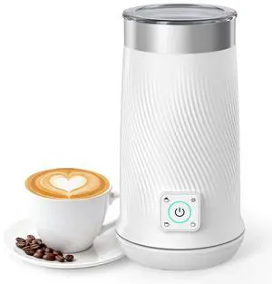 Milk Frother, 4-in-1 Electric Milk Steamer, Warm and Cold Milk Warmer and Foam Maker for Coffee, Latte, Cappuccinos, Macchiato, 8.2oz/240ml, Stainless Steel, White